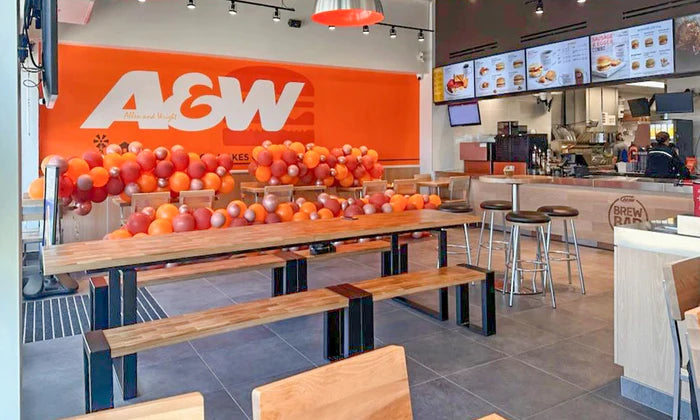 As leaders in environmental responsibility focused on achieving zero waste, we’re proud to be part of A&W’s movement that prioritizes innovative design with the planet in mind. Our climate positive Family Tables and Benches, made locally from coast to coast, are now featured in new and refurbished locations.