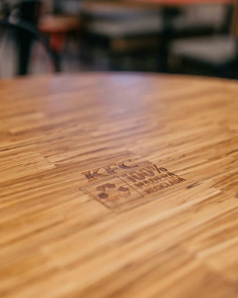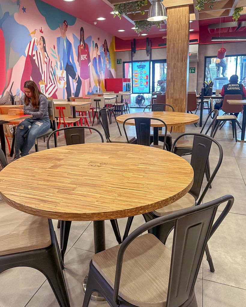In line with these goals, KFC Mexico partnered with us to remodel their iconic Zona Rosa branch. This collaboration resulted in a beautifully renovated space, giving over 229,000 discarded chopsticks a second life and saving 11,560 kg of CO2e emissions.