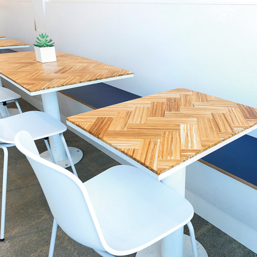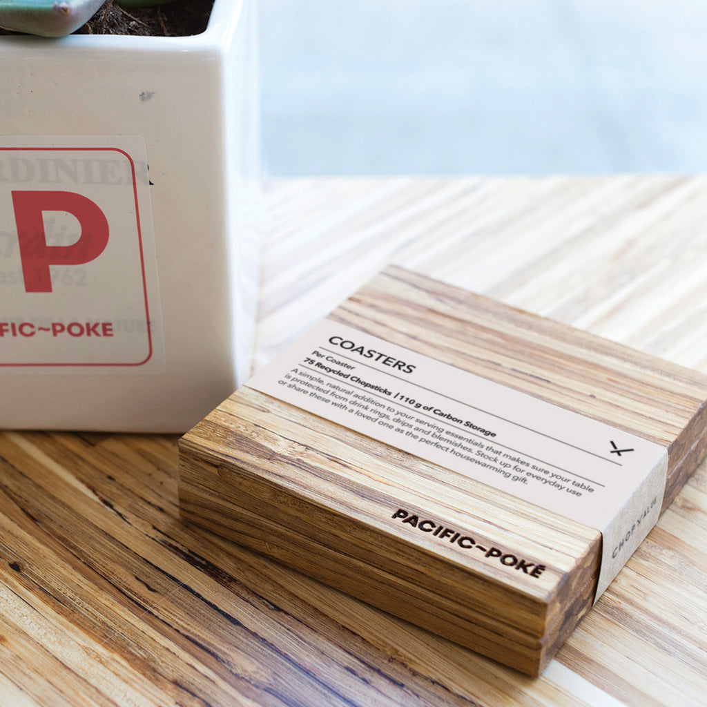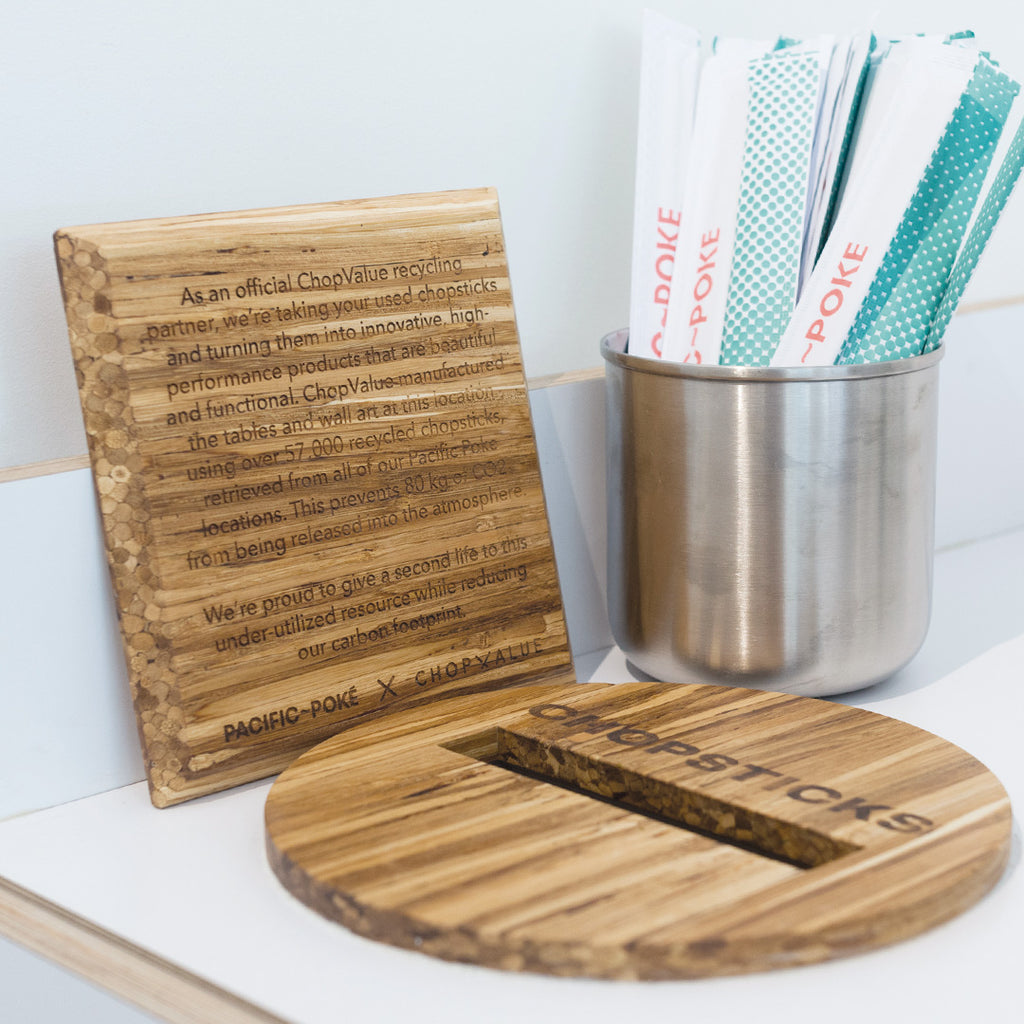 In an effort to reduce their carbon footprint and the impact they have on the environment, Pacific Poke is our collection partner and fully closes the loop with a wide variety of product solutions at all their store locations. Ranging from tables, wall paneling to decor, Pacific Poke is committed to sustainability and making greener choices.