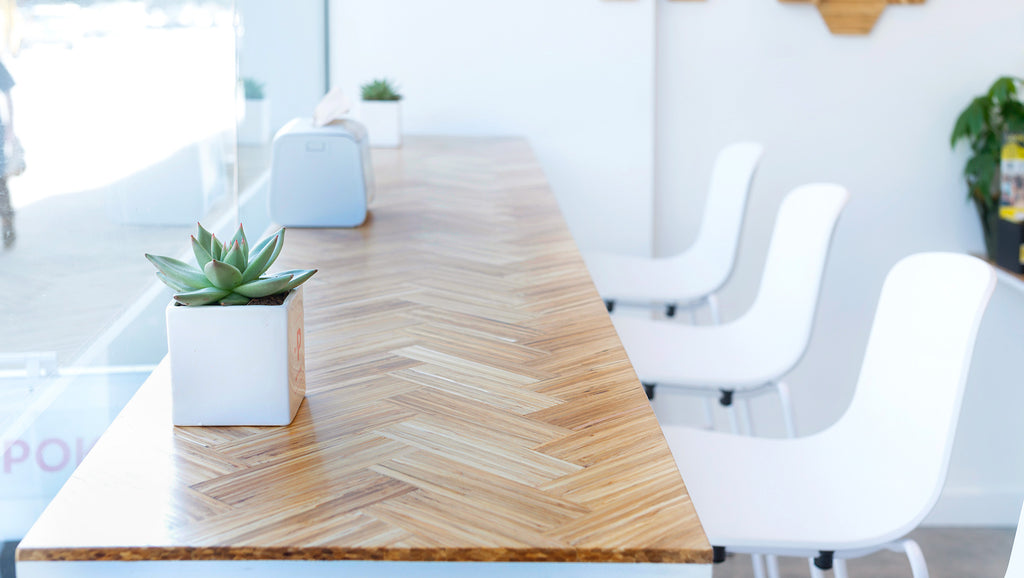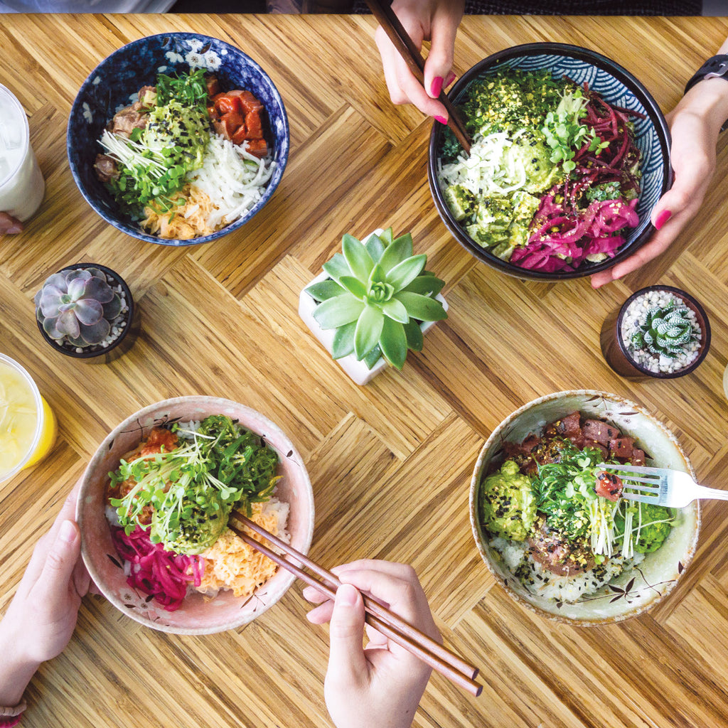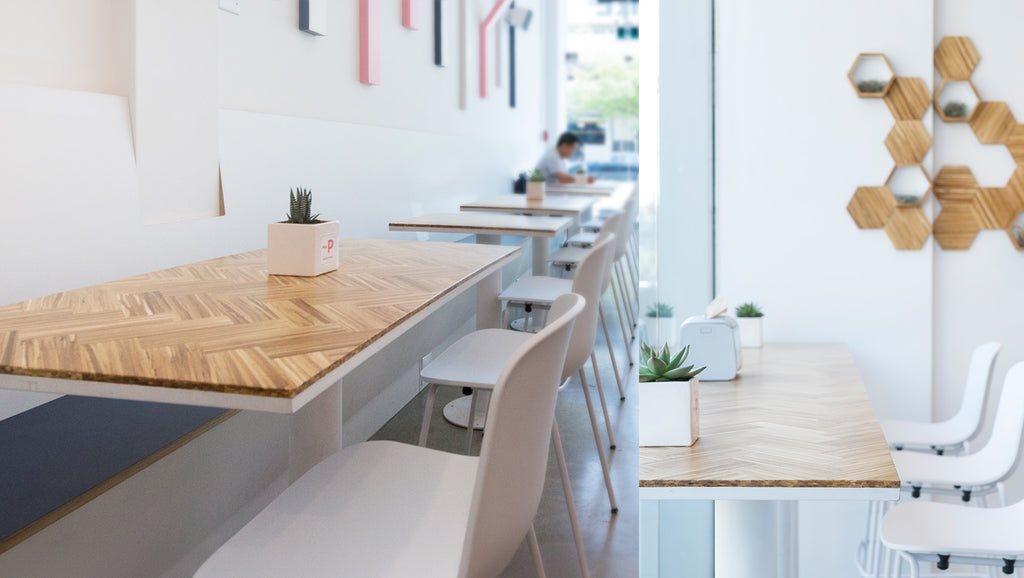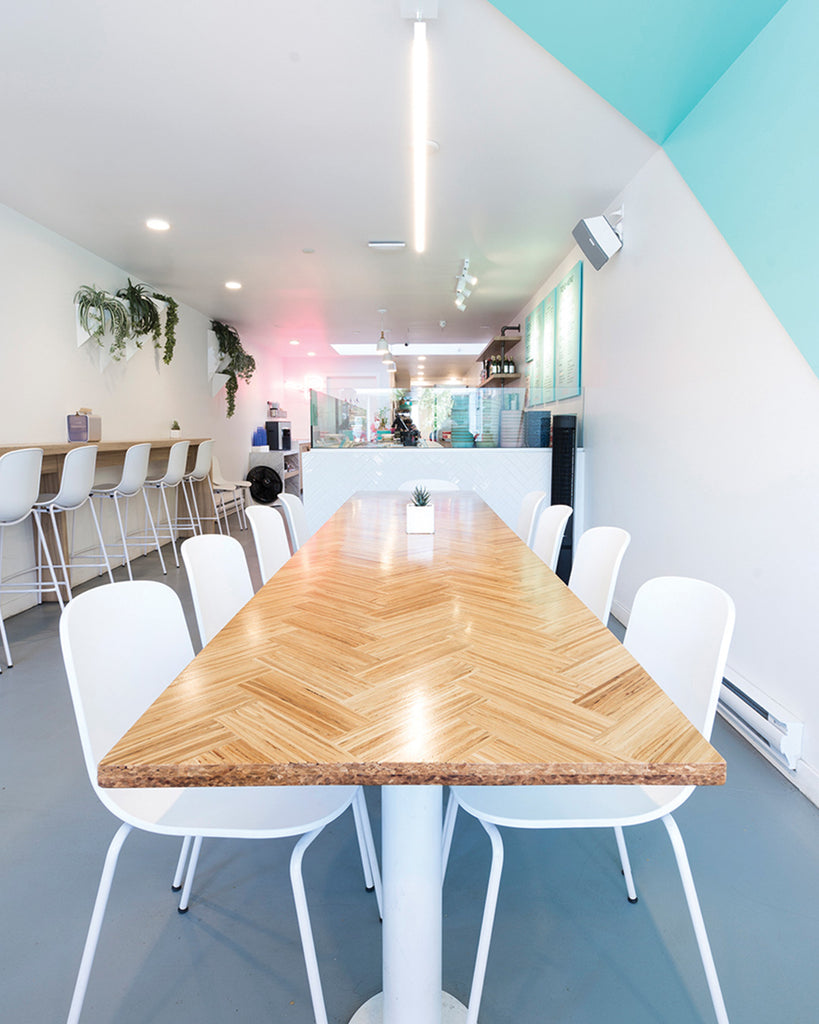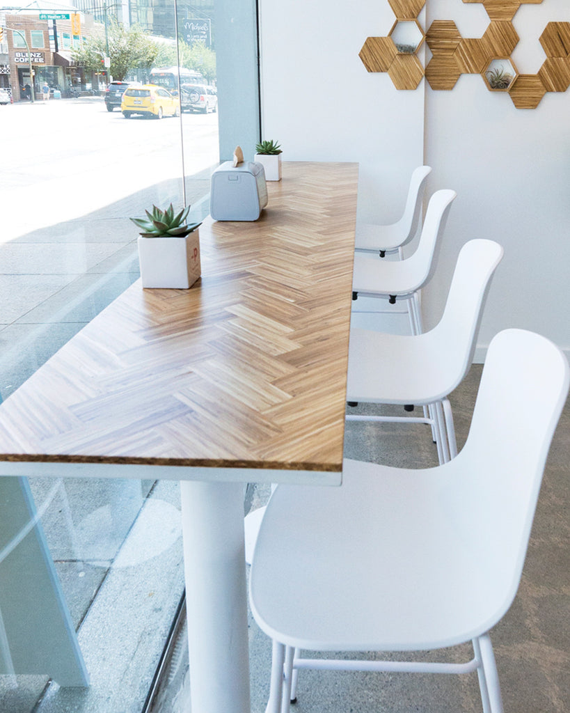 In an effort to reduce their carbon footprint and the impact they have on the environment, Pacific Poke is our collection partner and fully closes the loop with a wide variety of product solutions at all their store locations. Ranging from tables, wall paneling to decor, Pacific Poke is committed to sustainability and making greener choices.
